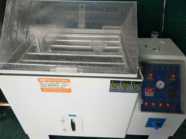 公司設有兩個檢測設備室,為確保產品符合客戶的品質要求,公司添置了氧化膜厚儀、色差儀、光澤儀、粗糙度儀、鉛筆測試儀、UV測試儀、恒溫恒濕機、高低溫測試儀、鹽霧機、震動耐磨測試機等一系列檢測設備,對客戶的產品做相關測試;生產設備包括氧化全自動生產線2條,自動噴砂機4臺、手動噴砂機器翻譯臺、鐳雕機3臺和1臺絲印機;