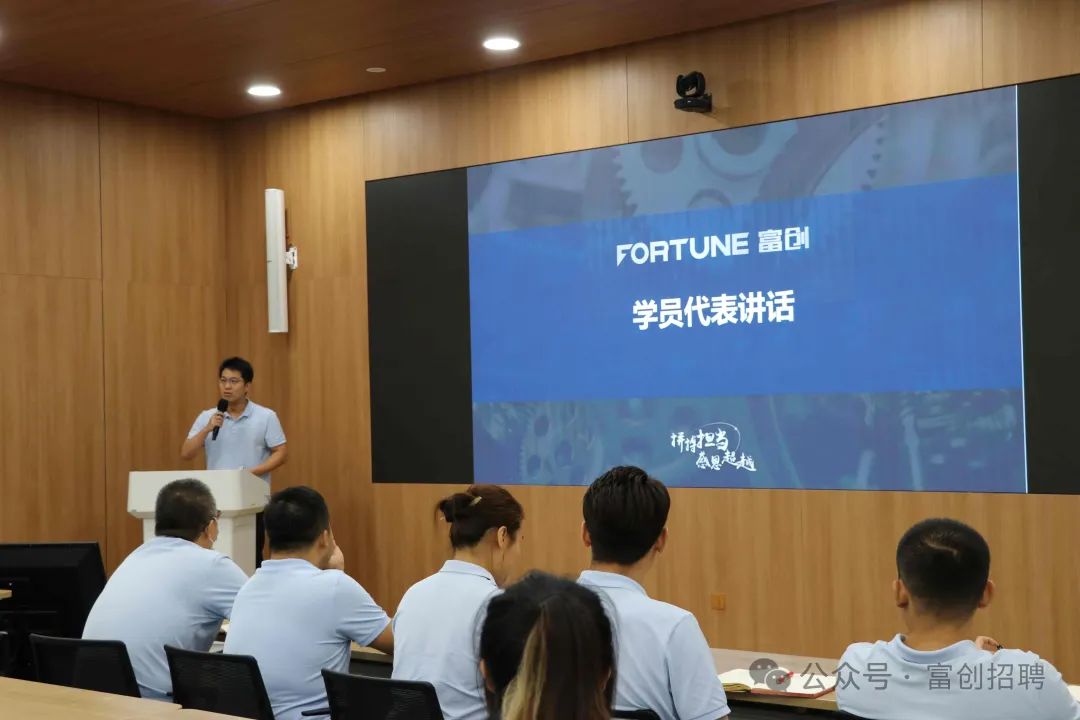 學(xué)員代表國際業(yè)務(wù)中心孟凡琦進(jìn)行發(fā)言,作為24屆校招生代表,他對富創(chuàng)文化與工作環(huán)境表示深深的認(rèn)可,感恩領(lǐng)導(dǎo)導(dǎo)師給予不斷學(xué)習(xí)成長的機(jī)會。接下來將會以導(dǎo)師為榜樣,成為一個努力追求卓越的富創(chuàng)人!